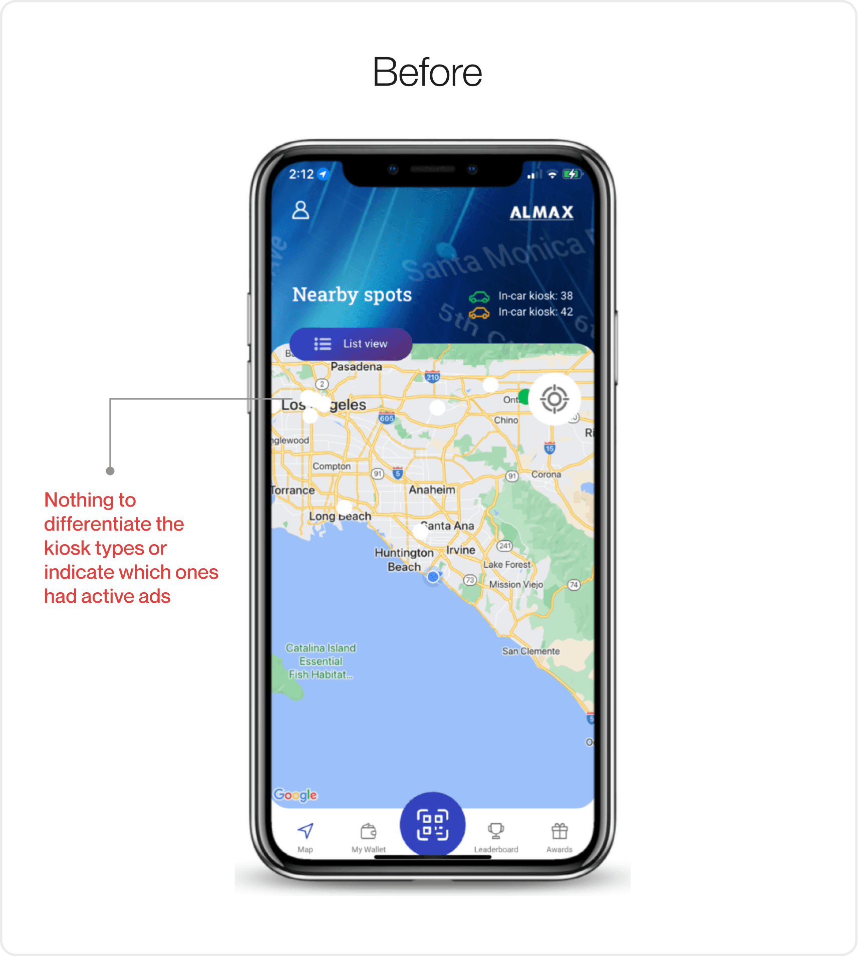 Kiosks were displayed in a way that made it hard to tell what was what. Users couldn't easily distinguish between kiosk types, and there was no visual indication of which ones had active ads. which led to confusion and missed opportunities.
