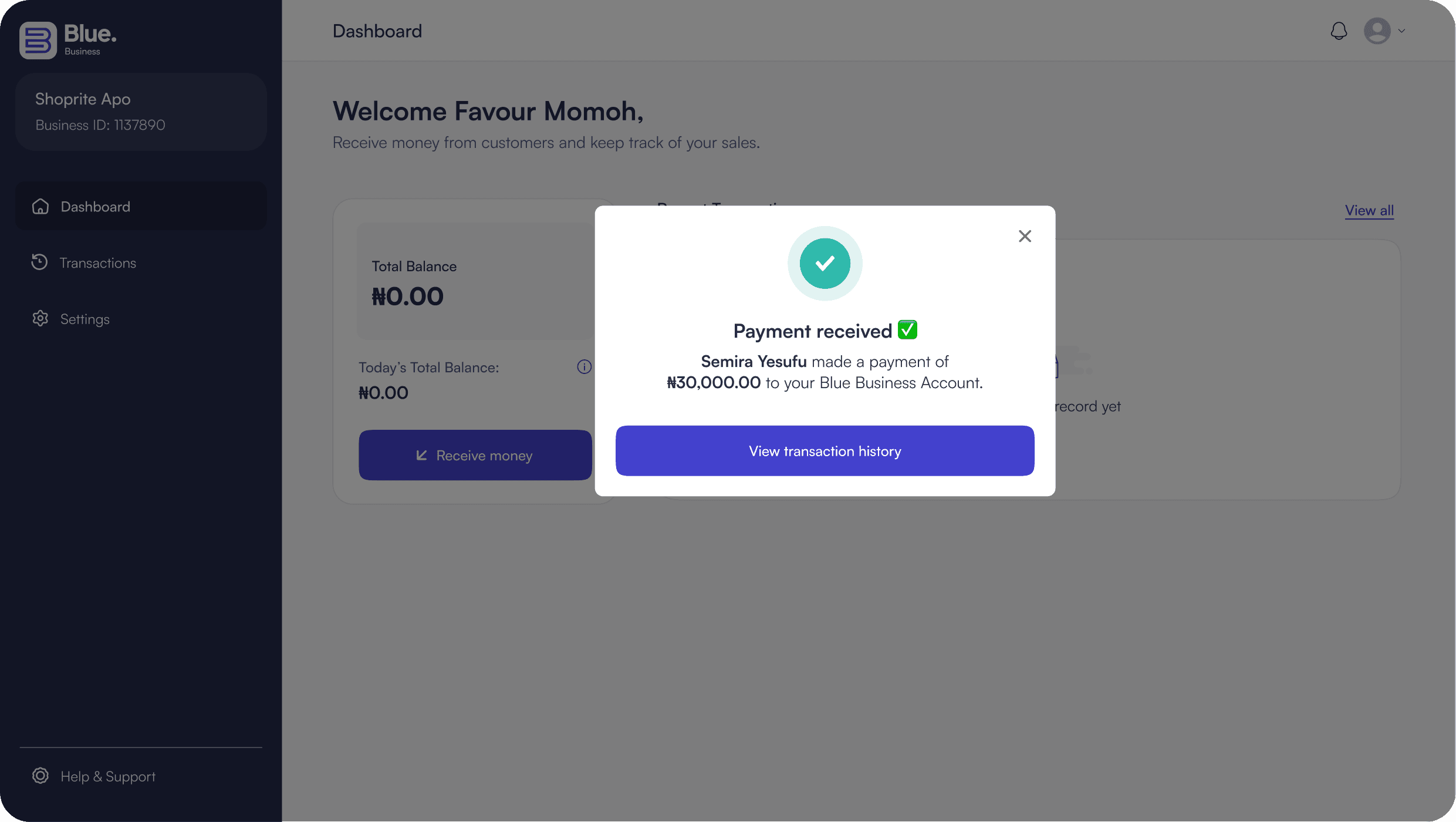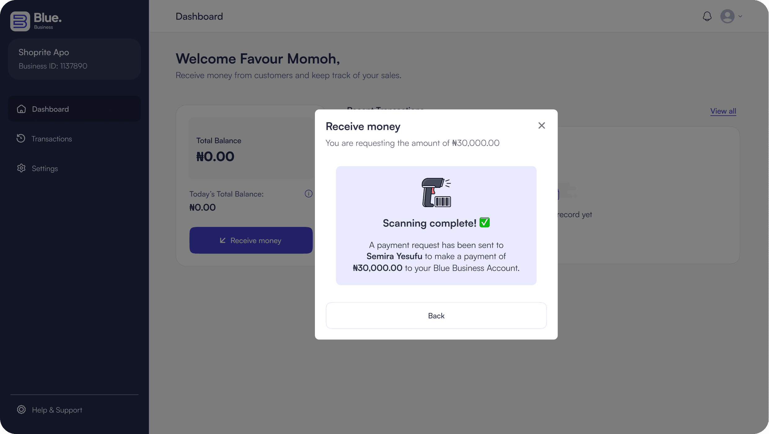 Like I mentioned earlier, we already had a P2P payment app for individuals and businesses, so we weren't building from scratch, just extending into new territory. Because payments happened entirely within the Blue ecosystem, both the cashier and the customer could see and confirm transactions in real time