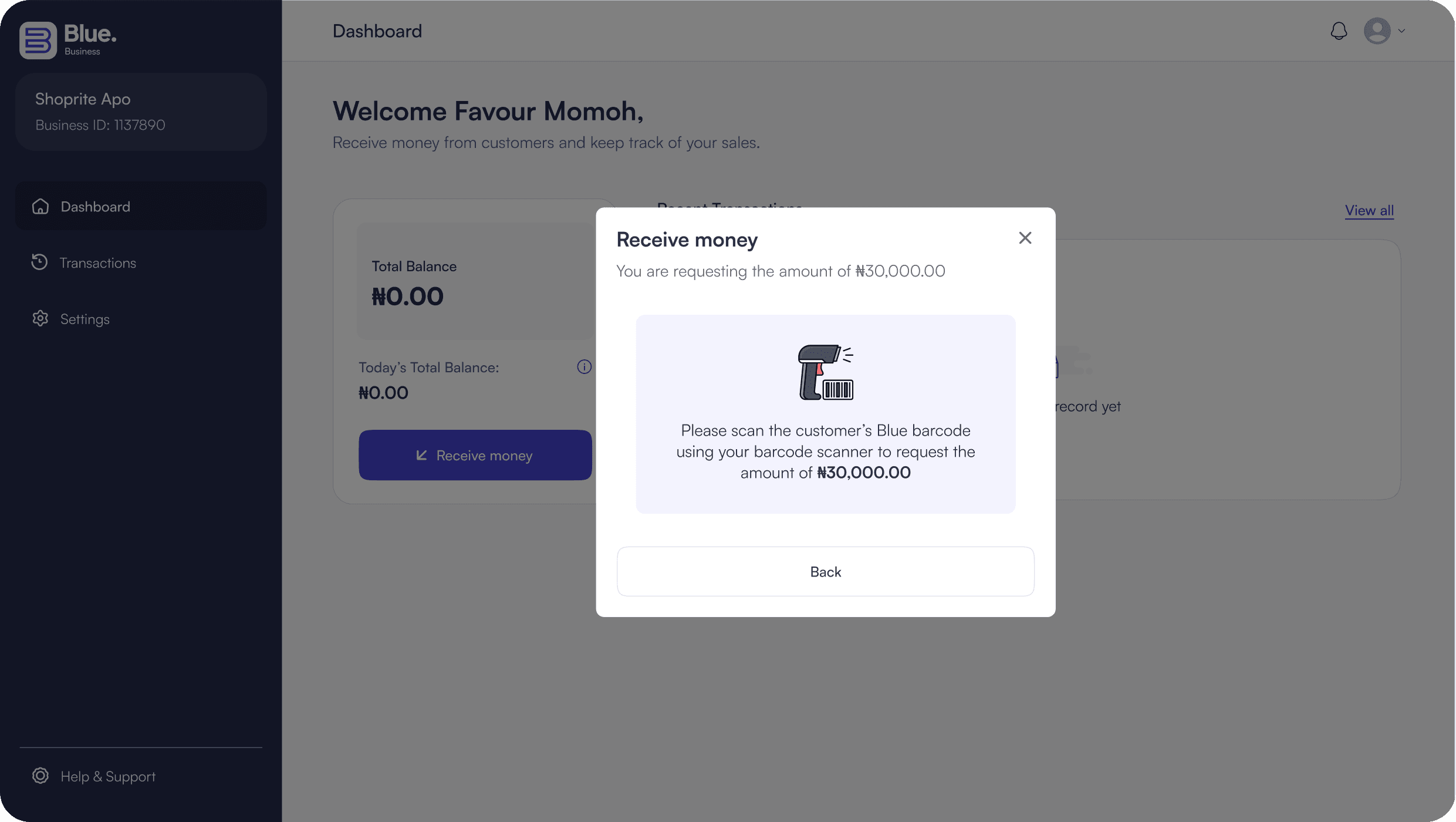 From the research, one thing became clear: businesses needed a payment flow that worked smoothly at the counter and fit naturally into their existing POS inventory workflows. That insight led to the BlueBusiness Desktop App, a dedicated experience for handling in-store payments using barcodes.